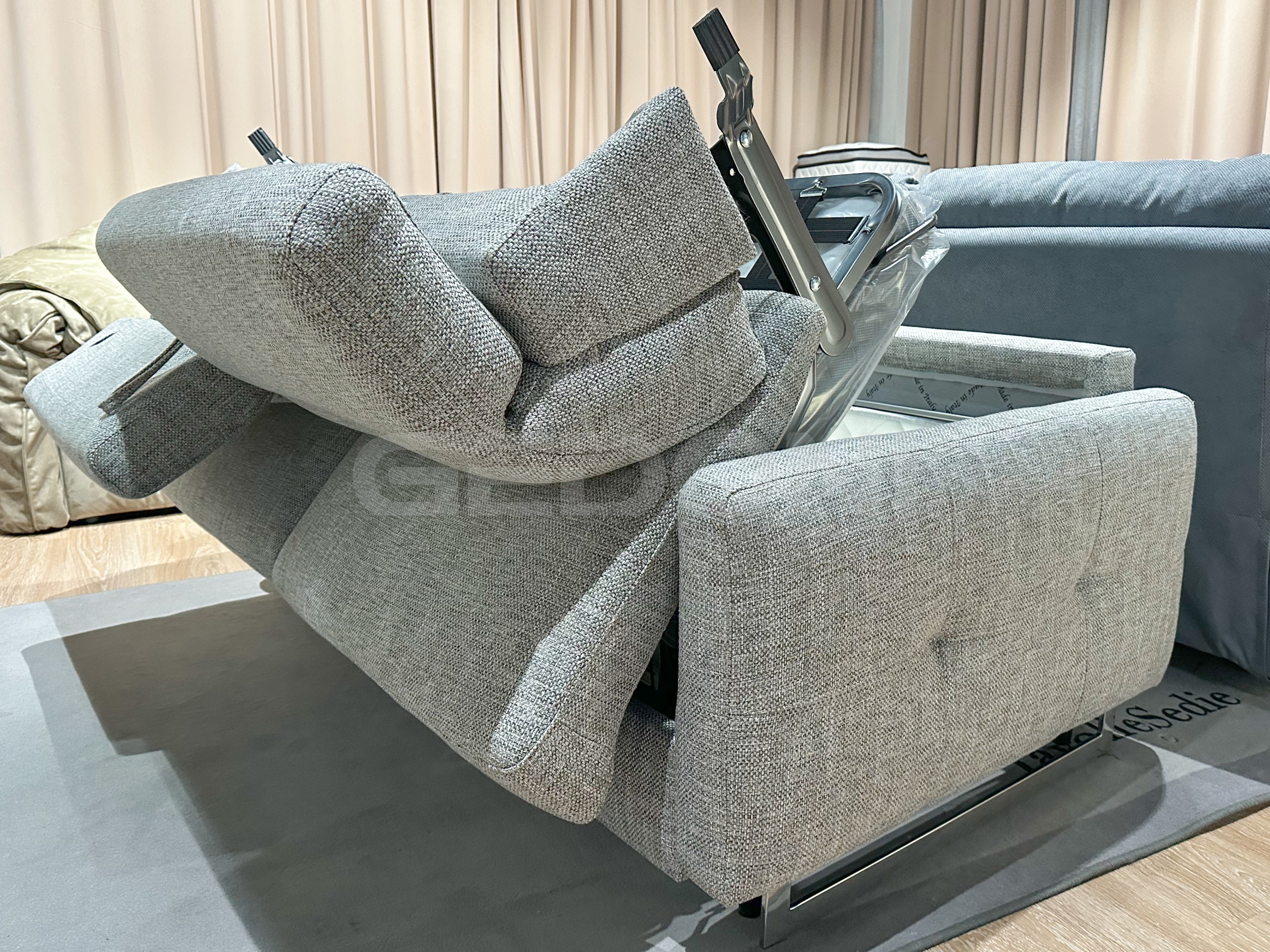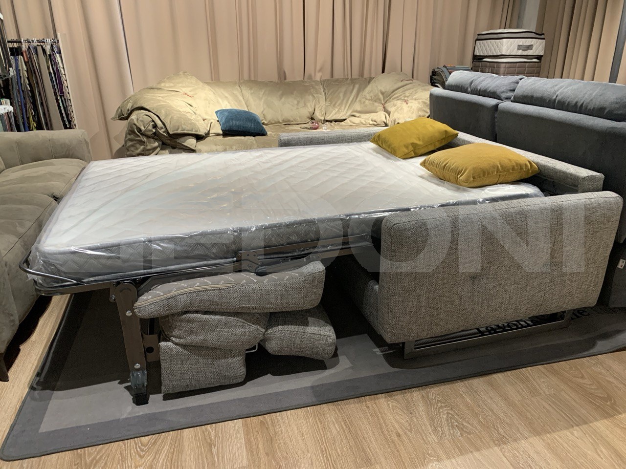 Описание: Итальянский трехместный диван в тканевой с надёжным механизмом рассчитанным для повседневного использования! Толщина матраса 14см.